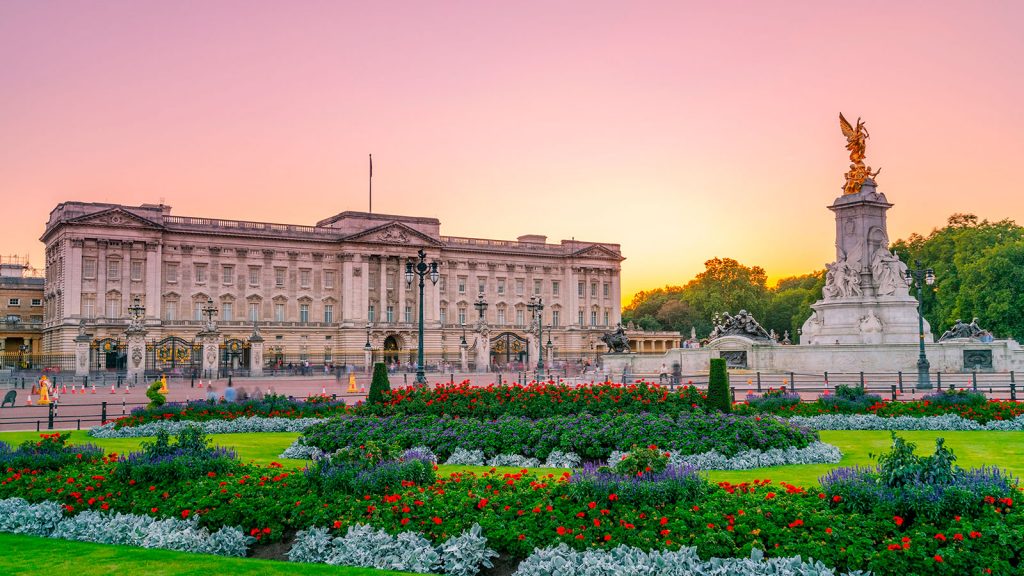 Ante la fachada trasera del palacio se extiende una inmaculada alfombra de césped que cada verano es testigo de multitudinarias fiestas organizadas por la reina, con más de 8.000 invitados y la friolera de 27.000 tazas de té, 20.000 sándwiches y 20.000 trozos de pastel.