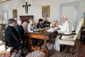 «Perdonadme si me quedo sentado, pero me duele la pierna y es peor si me quedo en pie, así (sentado) es mejor para mí», dijo a los asistentes a la audiencia en el palacio pontificio con ocasión del centenario de la revista «Tierra Santa» de la Custodia franciscana de Tierra Santa.