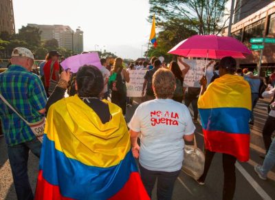 Este lunes Timba se tiñó de blanco. Los habitantes recorrieron las principales calles ondeando banderas y exigiendo a los grupos armados detenerse. Varios llevaban pancartas que decían “que pare la guerra, que siga la vida”.