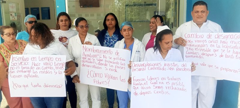 Durante la manifestación, el personal de enfermería expuso en pancartas sus principales reclamos, entre ellos: Incentivo por tiempo en servicio, nombramientos de auxiliares, reposición de las desvinculaciones injustas del personal contratado en pandemia, entre otras.