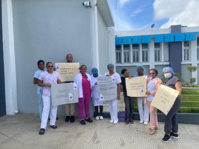 Los protestantes, que estuvieron respaldados por otras organizaciones del sector, reclamaron atención inmediata a las necesidades de las enfermeras y personal de apoyo en los centros de salud.
