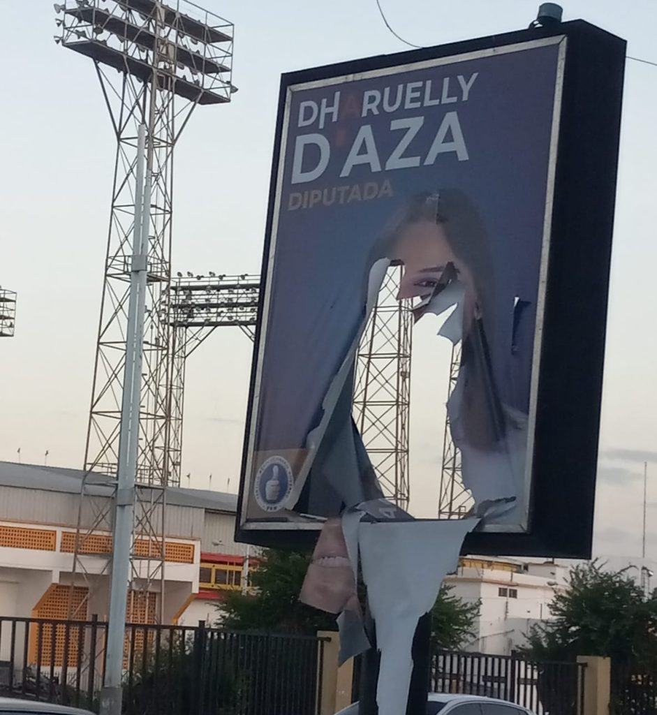 EL NUEVO DIARIO, SANTIAGO. – El equipo de trabajo de Dharuelly D’Aza, aspirante a diputada por la circunscripción uno de Santiago, por el Partido Revolucionario Moderno (PRM), denunció este lunes la continua destrucción de las vallas publicitarias de la candidata, calificando esta acción como vandálica.
