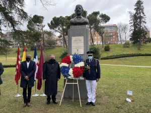 Hoy, varios representantes de la Embajada así como otros residentes de la isla en la capital española se acercaron hasta el busto, donde se realizó una ofrenda floral y una banda municipal tocó los himnos dominicano y español.