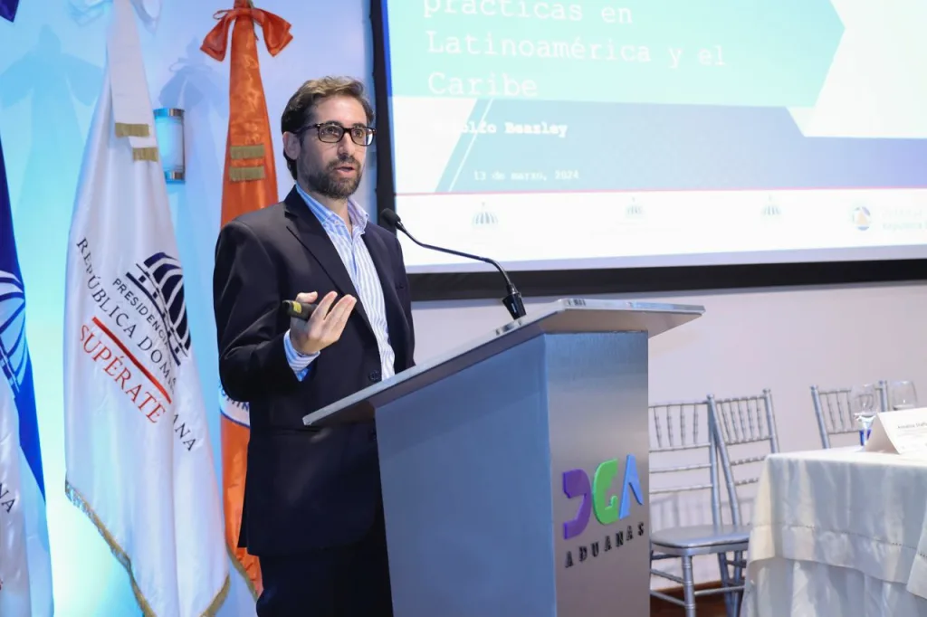 La conferencia “Protección Social Adaptativa: mejores prácticas en la Región de Latinoamérica y el Caribe”, celebrada en el auditorio de la sede central de la Dirección General de Aduanas, contó con la participación de Rodolfo José Miguel Holguín, viceministro de la Presidencia; Jeffrey Lizardo, director del Siuben; Waillys Lewis, subdirector de Supérate, y Juan Salas, director general de Defensa Civil.
