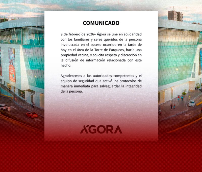 Tras lo ocurrido, la administración de Ágora Mall emitió un comunicado en el que expresó su solidaridad con los familiares y seres queridos de la persona involucrada, al tiempo que solicitó respeto y discreción en la difusión de informaciones relacionadas con el suceso.