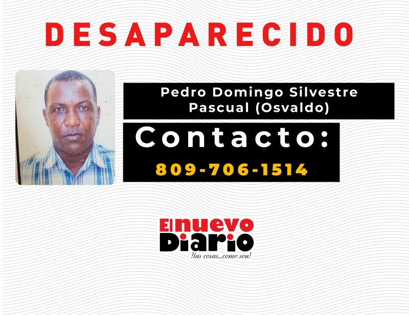 EL NUEVO DIARIO, SAN PEDRO DE MACORÍS.- Familiares de Pedro Domingo Silvestre Pascual (Osvaldo) solicitan ayuda urgente para dar con su paradero, tras su desaparición el pasado 11 de junio de 2025, cuando salió a trabajar junto a dos compañeros al vertedero del municipio.