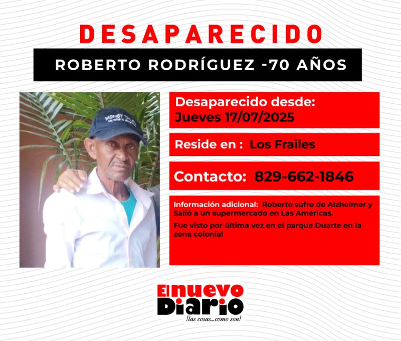 Se trata de Roberto Rodríguez, de 70 años de edad, quien padece de Alzheimer y reside en el sector Los Frailes Segundo del citado municipio.