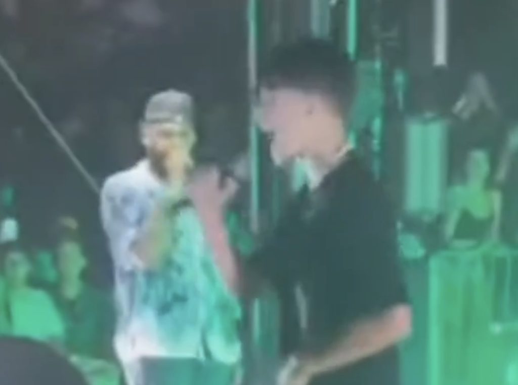 Carrión presentaba una sesión musical con el productor Bizarrap en Miami y subió a su fanático a cantar quien entre salto y salto vomitó.