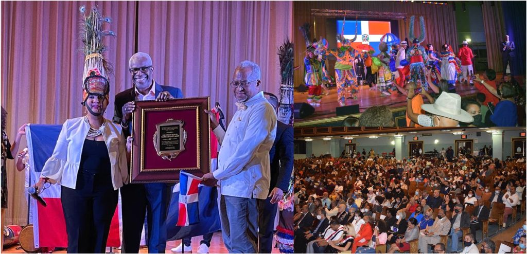 “Presentada al doctor Silvio Torres Saillant por poner en alto la dominicanidad en los Estados Unidos y el mundo y por sus grandes aportes a la cultura”, reza la placa.