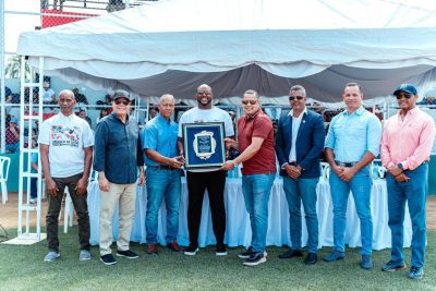 Tras el juramento deportivo y el recorrido de la antorcha, Hanser Alberto fue reconocido por los organizadores y ejecutivos de la Fundación Manuel Batista, recibiendo una vistosa placa. El ex pelotero agradeció el gesto y expresó su gratitud hacia Manuel Batista por tomarlo en cuenta para esta importante dedicatoria.