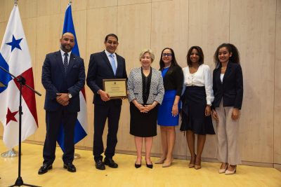 El conferencista fue invitado por la embajadora dominicana en Panamá, Violeta Mazara, quien le entregó una placa de reconocimiento por sus “grandes aportes y dedicación en favor de la promoción de la cultura de República Dominicana en nuestro país y en el exterior”.