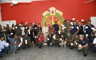 EL NUEVO DIARIO, SANTIAGO.- La gobernadora provincial, Rosa Santos, entregó este viernes bonos navideños al Cuerpo de Bomberos de Santiago y a los representantes de federaciones de juntas de vecinos.