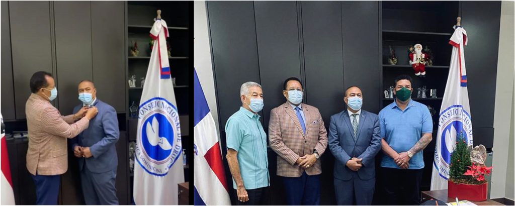 “Por sus servicios realizados y los que seguirá realizando, me permito este honor de colocarle el pin de dicha institución con el cual lo estamos acreditando como asesor de la misma”, dijo Marte Martínez.