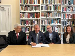 Durante la firma del convenio, el titular del MESCYT estuvo acompañado por el embajador dominicano en el Reino Unido, Elnio Durán; la vicedecana de la Facultad de Ciencias Jurídicas y Políticas de la UASD, Rosalía Sosa Pérez, y otros funcionarios diplomáticos de la Embajada Dominicana.