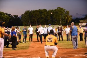 Simó realizó el pitcheo de honor, recibió la placa de reconocimiento de Pereyra e hizo entrega de la Copa BanReservas, la cual se disputa en el torneo.