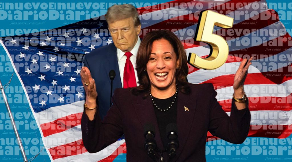 EL NUEVO DIARIO, WASHINGTON. – La vicepresidenta de Estados Unidos y candidata demócrata, Kamala Harris, aventaja por cinco puntos en intención de voto nacional a su rival republicano, el expresidente Donald Trump, según una encuesta realizada tras el debate televisado del pasado martes.