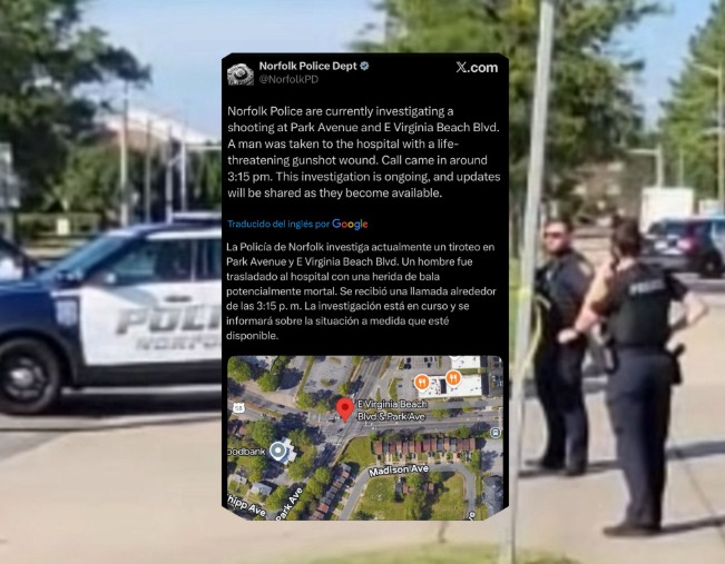EL NUEVO DIARIO, VIRGINIA, ESTADOS UNIDOS. – Un hombre, aún no identificado, resultó gravemente herido tras un tiroteo registrado la tarde de este sábado en la intersección de Park Avenue con E. Virginia Beach Boulevard.