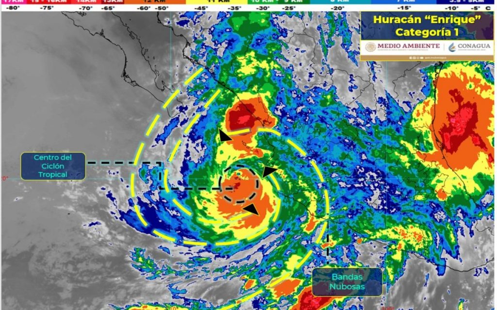 EL NUEVO DIARIO, CIUDAD DE MÉXICO. – El huracán Enrique, en la categoría 1 en la escala Saffir Simpson, se encuentra muy cerca de la costa occidental de México y ocasiona lluvias torrenciales, vientos fuertes y oleaje elevado en varios estados, informó este lunes el Servicio Meteorológico Nacional (SMN).