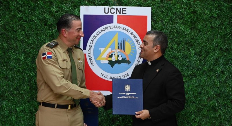 EL NUEVO DIARIO, SANTO DOMINGO.- El director general del Instituto Cartográfico Militar (ICM), coronel César A. Medina Calderón, ERD y el rector de la Universidad Católica Nordestana (UCNE), reverendo padre doctor Isaac García de la Cruz, firmaron este martes un acuerdo de cooperación interinstitucional.