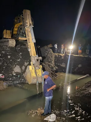 Los trabajos de corrección de la avería que concluyeron siendo las 12:36 de la madrugada del lunes 25, incluyeron el uso de una retro excavadora caterpillar 320, un camión succión, cuatro motos bombas, un (1) generador eléctrico, entre otras herramientas.