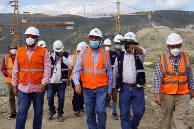 Luego del muro, la inspección continuó en el Centro Poblado, donde fueron construidas 390 viviendas para reubicar a igual número de familias de las comunidades Monte Grande, Los Güiros, La Meseta y San Simón, constatando los avances en la construcción de dos plantas de tratamiento de aguas residuales, conforme a las normas medioambientales.