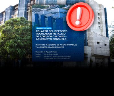EL NUEVO DIARIO, SAN PEDRO DE MACORÍS. – Un informe técnico del Instituto Nacional de Aguas Potables y Alcantarillados (Inapa) concluyó que el colapso del tanque de agua ocurrido este miércoles en el municipio de Consuelo fue causado por una falla estructural en la base del depósito, lo que provocó la liberación repentina de un millón de galones de agua y la destrucción total de la estructura.
