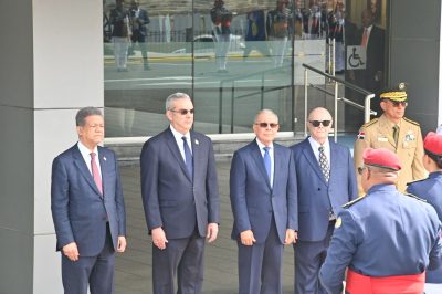 Tanto el presidente como todos los exmandatarios arribaron antes de las 3:45 de la tarde al MIDE, entraron a medida en que iban llegando, y luego salieron todos juntos para recibir los honores militares correspondientes por miembros de los distintos cuerpos castrenses.