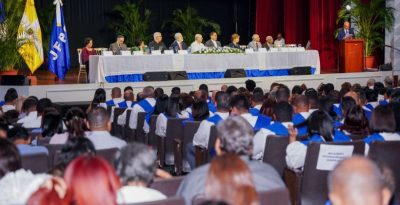 Estimuló a los graduandos actuar como ciudadanos comprometidos con la justicia, la democracia, la ciudadanía sustantiva, el respeto a los derechos humanos, la transparencia, así como la protección y el uso racional de los recursos naturales. Estos son pilares que nos servirán para dar continuidad al proyecto de nación iniciado por nuestros padres fundadores en el año 1844.