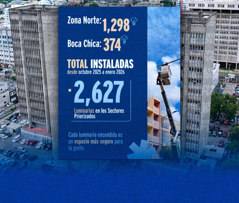 EL NUEVO DIARIO, SANTO DOMINGO. – El Ministerio de Interior y Policía informó este jueves que entre octubre de 2025 y enero de 2026 fueron instaladas 2,627 luminarias en distintos sectores del país, como parte del plan de iluminación comunitaria que se ejecuta en coordinación con la Empresa Distribuidora de Electricidad del Este (Edeeste).