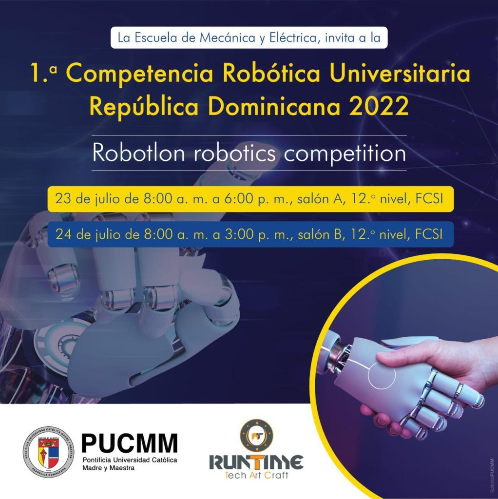 EL NUEVO DIARIO, SANTO DOMINGO.- La Pontificia Universidad Católica Madre y Maestra (PUCMM), con el apoyo de la compañía RunTime, organiza la primera competencia universitaria de robótica en República Dominicana, “Robotlon Robotics Competition 2022” está dirigida a estudiantes universitarios que enfrentan desafíos tecnológicos usando un robot para realizar y completar los retos que se darán a conocer este sábado 23 de julio.