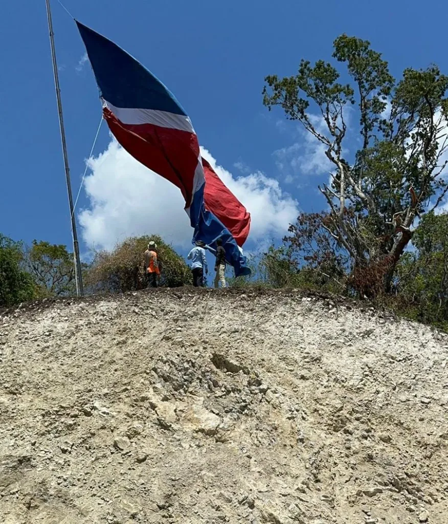 EL NUEVO DIARIO, SANTO DOMINGO.- El pueblo de San José de Ocoa fabricó y pintó la Bandera Nacional “más grande del país”, la cual fue izada en la Loma de Cabrera, y mide 30 pies de ancho y 20 de largo.