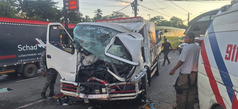EL NUEVO DIARIO, SAN CRISTÓBAL.- La colisión entre dos camiones dejó como resultado un joven comerciante muerto y otro herido, en un trágico accidente de tránsito ocurrido en la autopista 6 de Noviembre frente a la plaza del Chivo, provincia San Cristóbal.