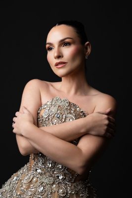 SANTO DOMINGO.- La actriz, productora y directora de casting, Katyuska Licairac, lleva una creación de la maestra Giannina Azar a la alfombra roja de Premios Soberano 2026.