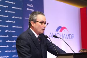 Al pronunciar las palabras de bienvenida del evento, el representante de AMCHAMDR exhortó a las empresas a aprovechar el lanzamiento del servicio “Despacho en 24 horas”, que tendrá una incidencia directa en el aumento de la competitividad en el país.