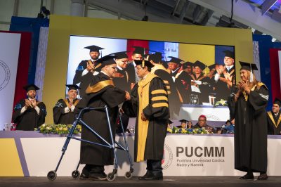 La Dirección de Servicios para la Inclusión de Pucmm ofrece apoyo a estudiantes con discapacidades, procurando garantizar un desempeño equitativo y adaptado a las necesidades individuales. Junto a Ambiorix, la abogada Rosa Paccagnella Capuzzo, que padece osteogénesis imperfecta, también se graduó de maestría en Criminología.