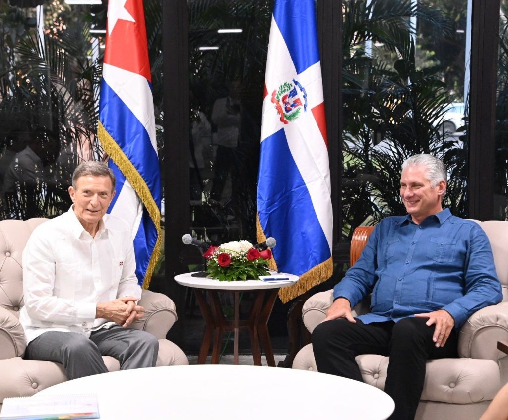 Durante un encuentro con el presidente cubano, Miguel Díaz-Canel Bermúdez, la comitiva oficial dominicana planteó al mandatario el interés de fortalecer el intercambio con Cuba en las áreas de biotecnología, ciencias, agricultura, educación, industria farmacéutica, salud y otros sectores fundamentales para avanzar en el desarrollo de sus pueblos.