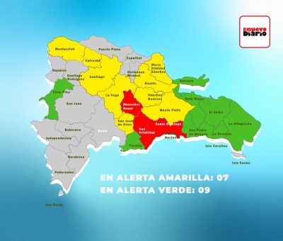 EL NUEVO DIARIO, SANTO DOMINGO. – El Comité de Operaciones de Emergencias (COE) colocó este viernes en alerta a 22 provincias, entre estas cuatro en roja, debido a las lluvias causadas por una vaguada, informó el organismo de socorro.
