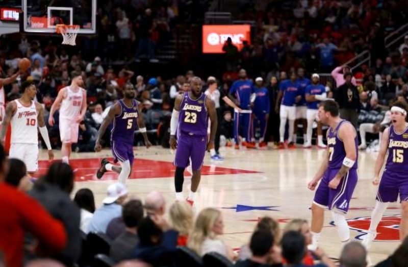 Doncic encadenó triples junto a alley-oops para mates de James y Rui Hachimura para poner el 120-111 y Houston ya no pudo remontar.