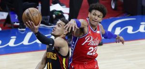Los Hawks acabaron con 20 canastas desde fuera del perímetro en 47 intentos, comparados a los 10 de 29 de los Sixers, que también fallaron desde la línea de personal con 24 de 35.