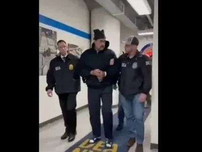 «Arrestado y escoltado», afirmó en la red social X la cuenta Rapid Response 47 encima del video, en el que se ve a Maduro con una sudadera negra con capucha, caminando por un pasillo con una alfombra azul que lleva la inscripción «DEA NYD».
