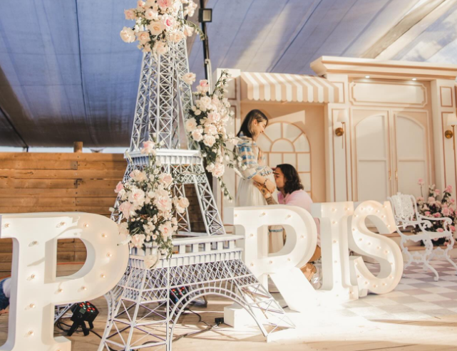 En las imágenes se puede observar la temática del evento, donde se destacó la un modelo de la Torre Eiffel, rosas en colores pastel, grandes letras iluminadas con el nombre de la bebé, osos de color rosa con el nombre de la primogénita del cantante ‘Paris’ junto a la arquitecta colombiana, Susana Gómez.