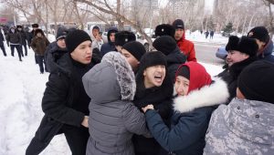 Horas antes, el Ministerio del Interior kazajo informó que un grupo de más de 300 jóvenes marchaba en dirección de la sede del Gobierno.