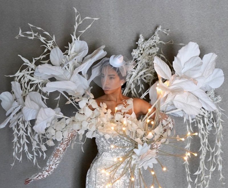 El vestido tiene una ingeniería de luces, tanto en la cola como en forma de tocado, que representan los 12 frutos del espíritu y su luz sobre la humanidad. Con una paloma con ojo de diamante negro montada en una kilométrica base, esta obra maestra basada en la pureza de una vida eterna es un canto de esperanza y fe que nos revela la poderosa promesa de Dios de otorgarnos vida después de la muerte.