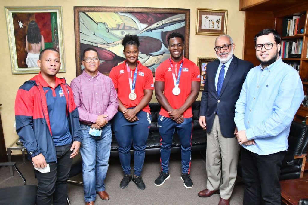 EL NUEVO DIAIRO, SANTO DOMINGO. – Zacarías Bonnat, primer atleta dominicano en ganar una medalla en halterofilia en unos Juegos Olímpicos y Crismery Santana, primera mujer quisqueyana en ganar una presea en una disciplina individual, visitaron este lunes las instalaciones de El Nuevo Diario, donde fueron recibidos por el director general, Persio Maldonado Sánchez.