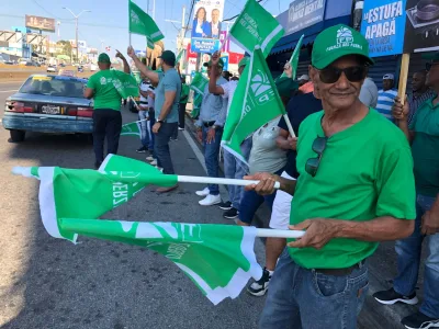 EL NUEVO DIARIO, SANTO DOMINGO. – Con un toque de banderas, miembros y simpatizantes de la Fuerza del Pueblo (FP) en Santo Domingo Este dieron este jueves una entusiasta despedida a los bañistas, viajeros y vacacionistas que por motivos del asueto de la Semana Santa, se desplazaban a los pueblos de la región este del país.