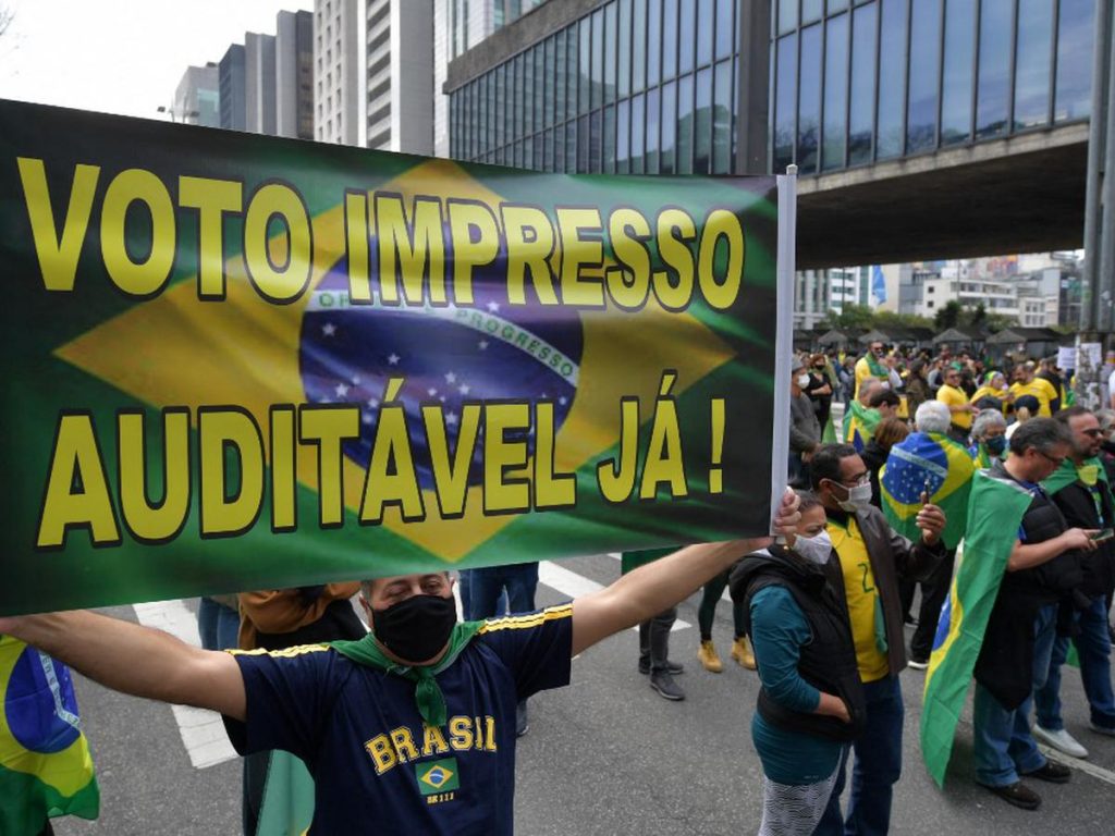 Con carteles con mensajes como «Elección transparente», «Elección democrática», «Voto auditable ya» y portando banderas y camisetas de la selección brasileña de fútbol, la mayoría de manifestantes realizaron concentraciones también en otras ciudades de Sao Paulo y en estados como Espírito Santo y Minas Gerais (sureste).