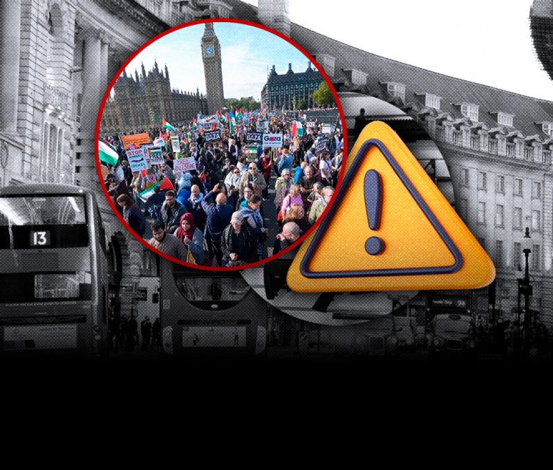 Ataviados con kufiyas y ondeando numerosas banderas palestinas, los manifestantes -llegados desde toda Inglaterra, según se veía en sus pancartas- gritaron consignas contra Israel y contra el gobierno británico. De hecho, uno de los carteles más abundantes entre los congregados era el que decía: «Starmer tiene las manos manchadas de sangre», en alusión al primer ministro Keir Starmer.
