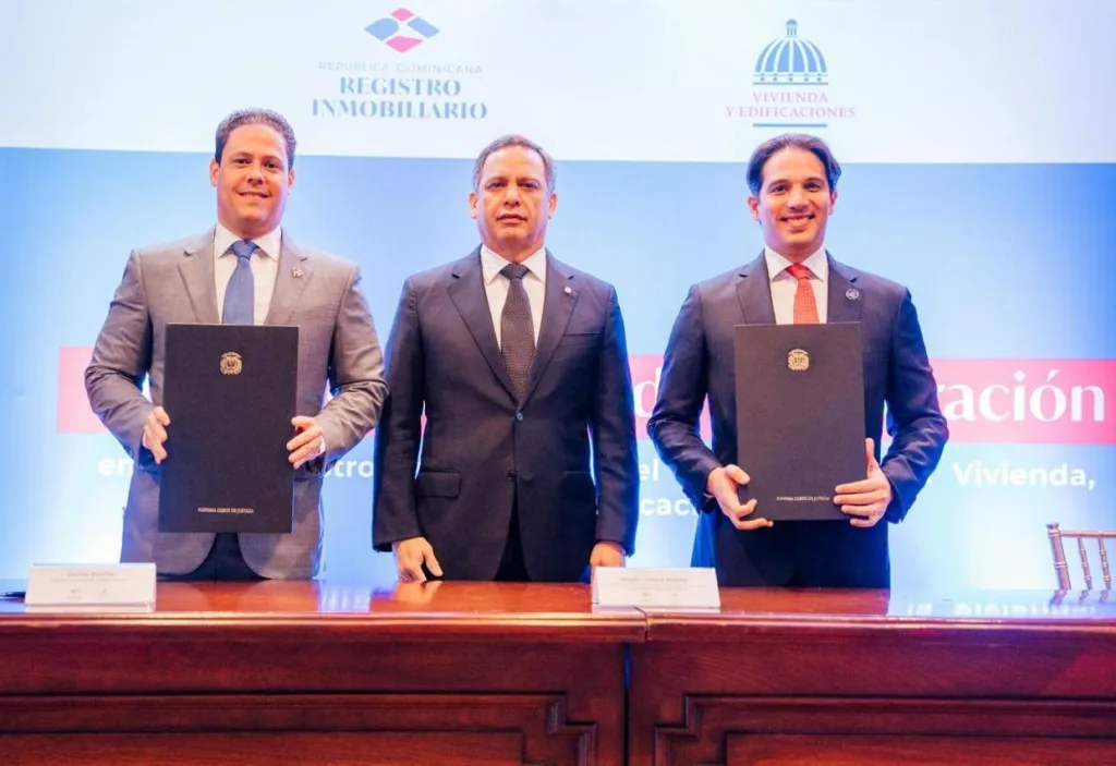 EL NUEVO DIARIO, SANTO DOMINGO. – Con la presencia del juez presidente de la Suprema Corte de Justicia (SCJ) y del Consejo del Poder Judicial, Henry Molina, en calidad de testigo, incumbentes del Registro Inmobiliario (RI) y del Ministerio de la Vivienda, Hábitat y Edificaciones (Mived), firmaron un acuerdo de colaboración con el objetivo de integrar los sistemas y eficientizar los procesos en los permisos de construcción.