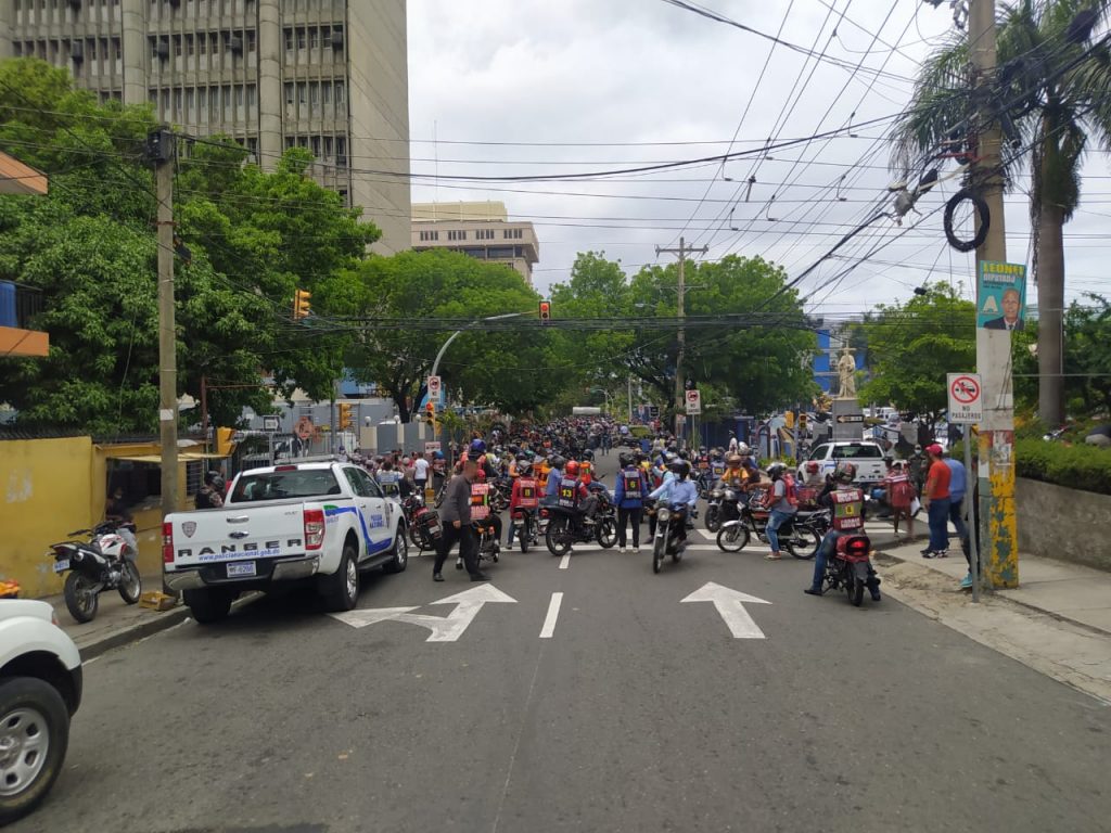 En su protesta pacífica, los motoristas vociferaban consignas alusivas a su reclamo.