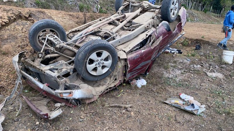 De acuerdo con informes preliminares, la explosión del neumático provocó que la camioneta se volcara y quedara con la cuatro gomas para arriba.